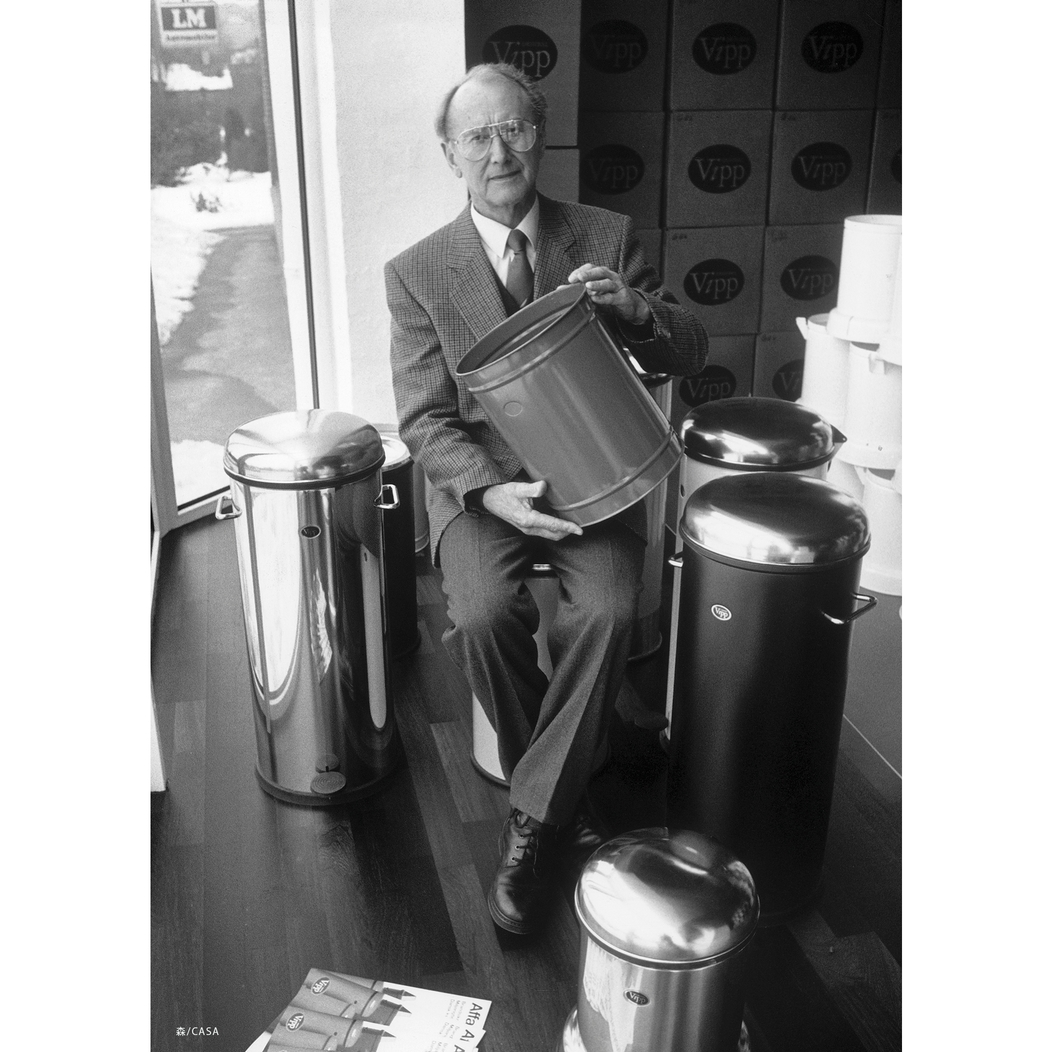 1939 年,Vipp 創辦人 Holger Nielsen 以鋼鐵金屬工藝起家,致力發明與打造日常生活不可或缺的耐用工具。成立之初,為髮廊工作的妻子 Marie 打造全世界第一個腳踏式垃圾筒 Vipp Bin,其輕巧、堅固且實用的特性,席捲丹麥,成為日常空間使用的必備設計單品。特別的是,Vipp Bin 於 2009 年獲得 MoMA 紐約現代藝術館列為永久收藏。