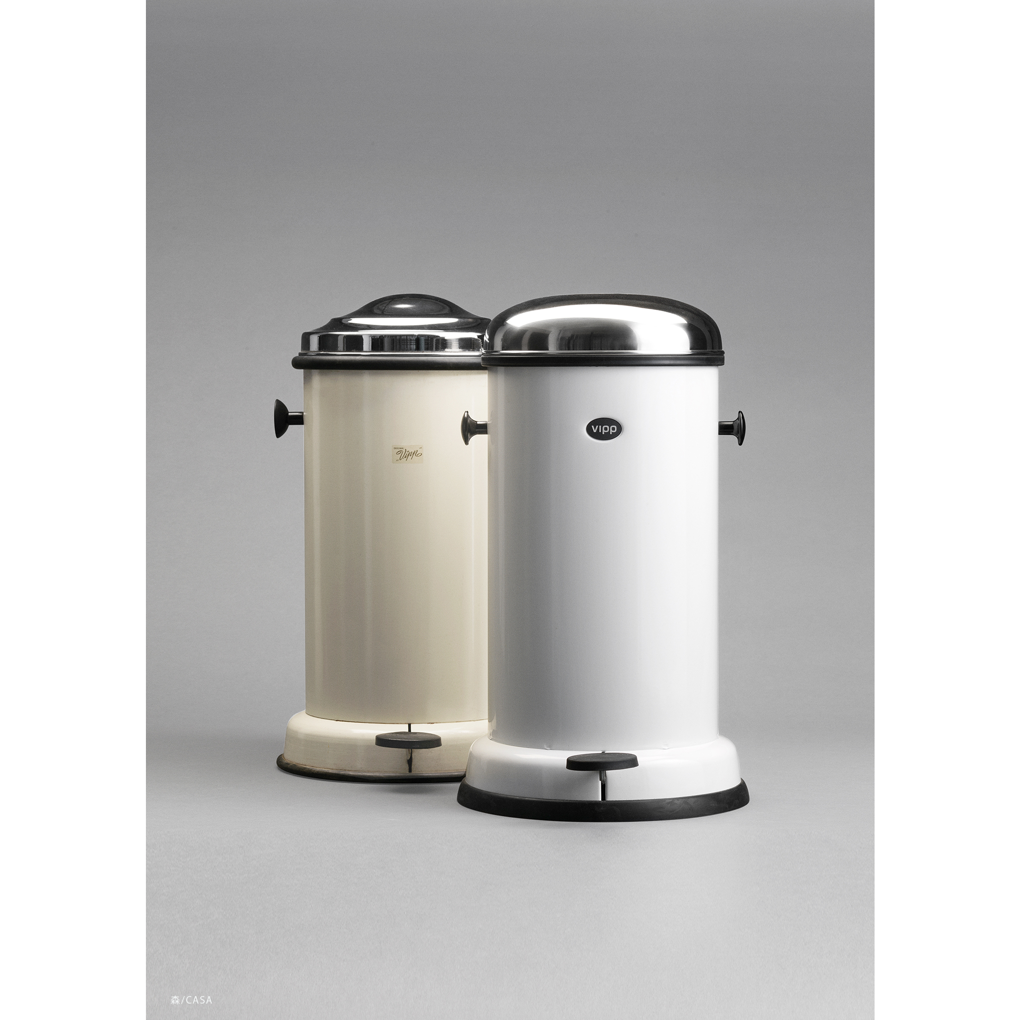 左後:初代 Vipp Bin 腳踏垃圾筒  /  右後:現今 Vipp Bin 腳踏垃圾筒