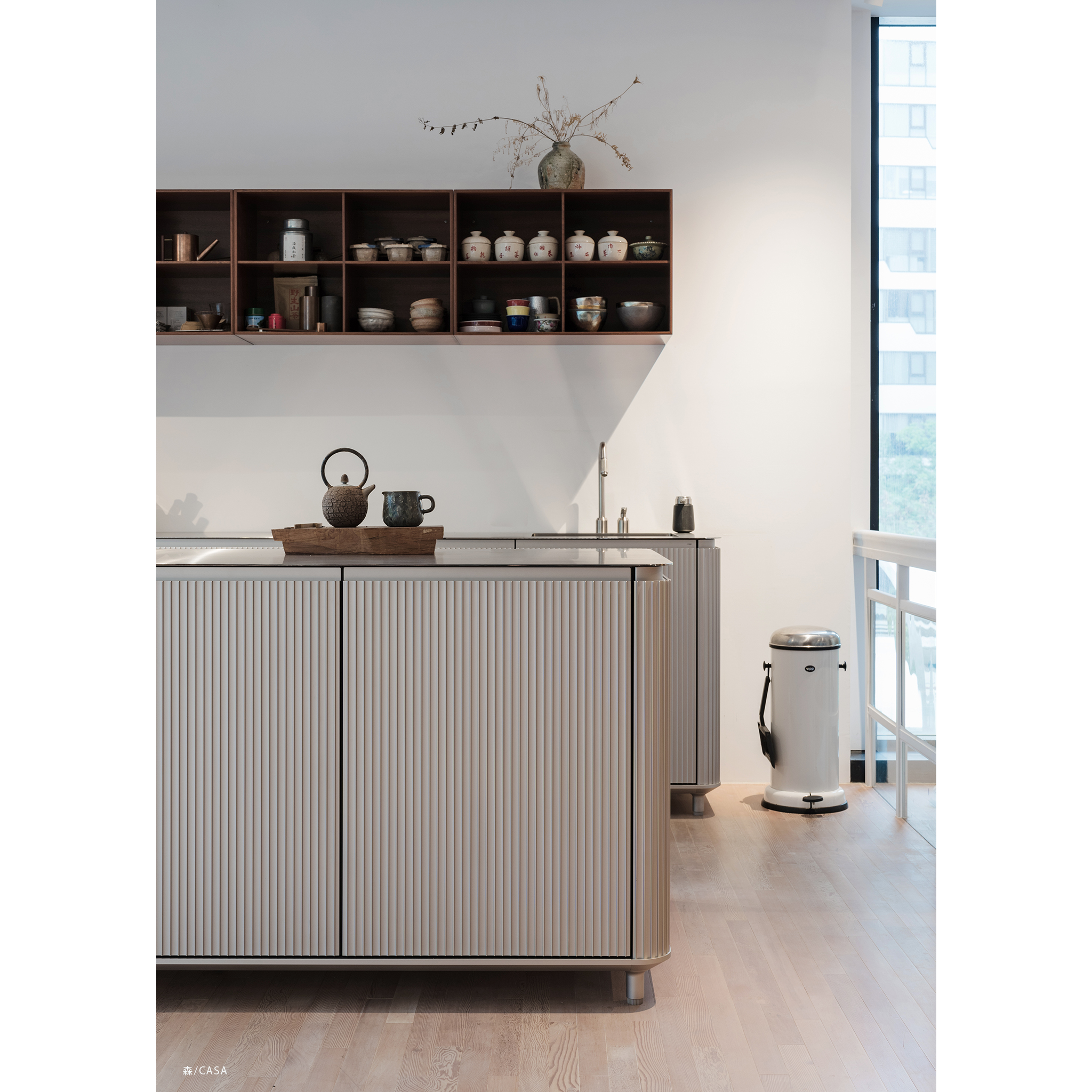 頂尖工藝的銀灰鋁 Aluminium,完美刻畫 Vipp 堅持的「工具美學 Tools for living」 的理念。堅實、毫不妥協的金屬結構語言,沉穩洗鍊展現丹麥設計。入冬前夕,森/CASA 將朦上銀灰的 V3 Kitchen 溫暖帶給你。視覺輕巧的銀灰鋁,會是你愛用一輩子的現代設計。耐用及高品質的金屬材質,將成為傳承給下一代的經典廚具。