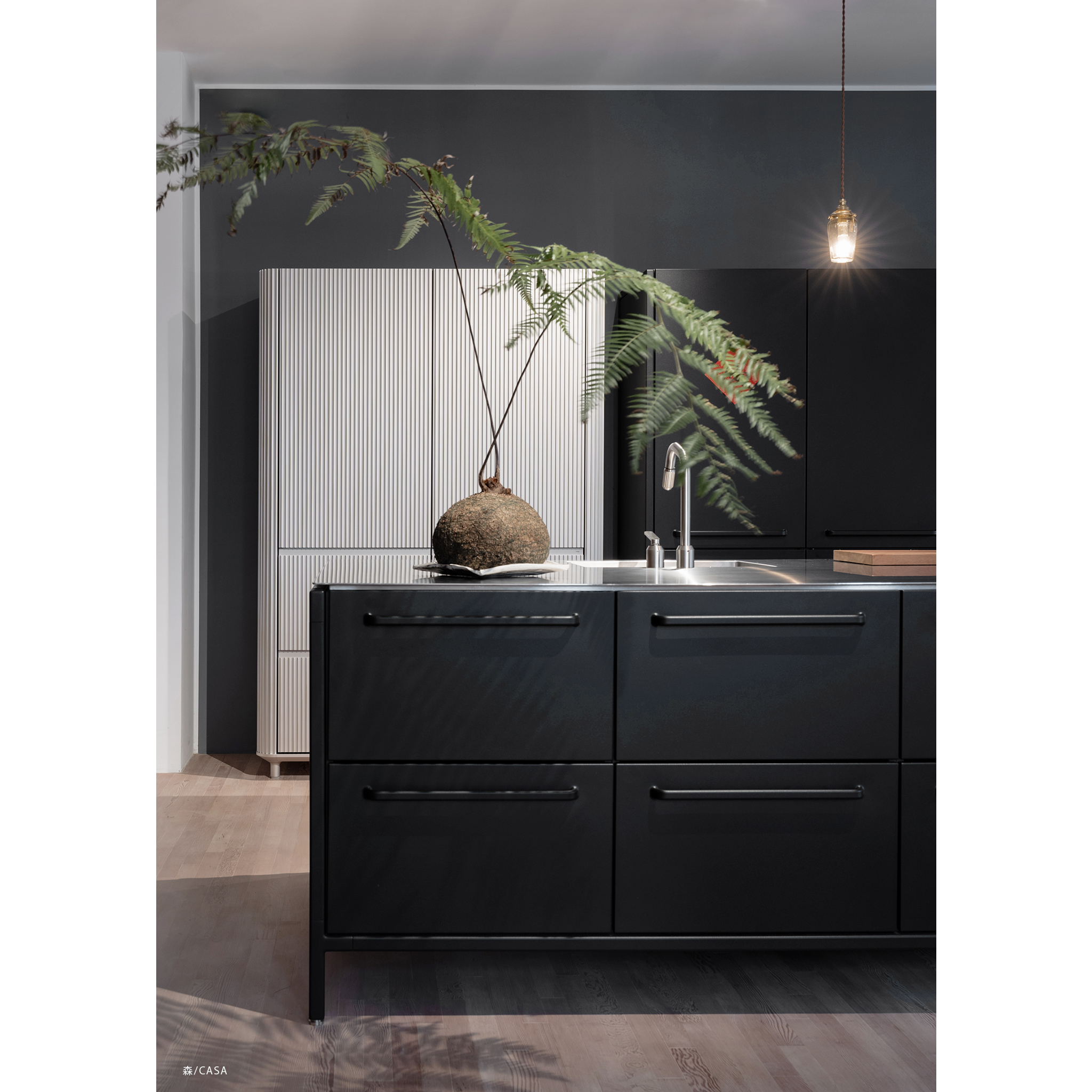 由 1939 年累積至今的金屬工藝經驗,Vipp 設計出外型及功能兼具的實用廚房。同時,採用 Free Standing 的模組設計,依不同機能自由組合,如水槽、電器、收納櫃等皆可配置其中。廚具模組能依使用者需求,提供個人化的設計配置,包含經典中島、高櫃、壁櫃以及吧檯中島,一應俱全。