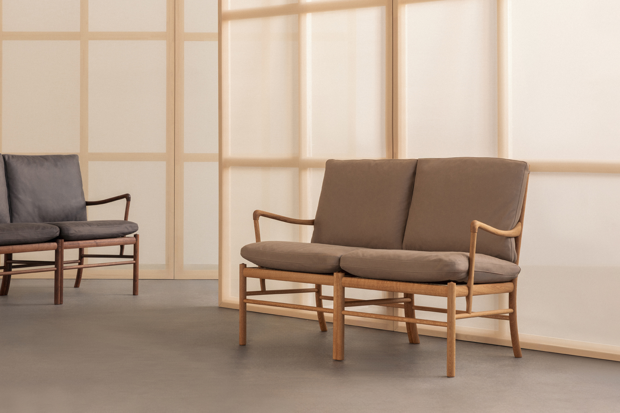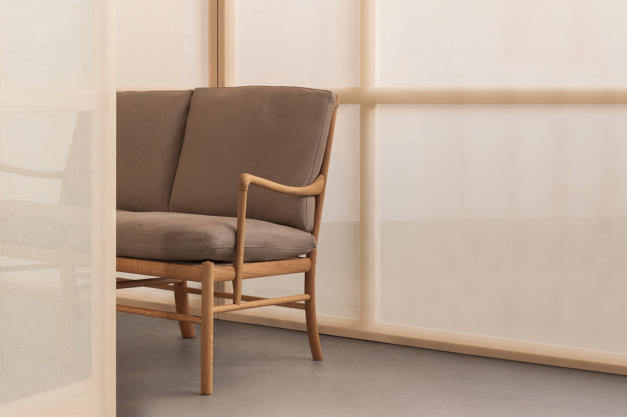 選用由丹麥皮革品牌 Sørensen 與設計工作室 Norm Architects 共同打造的 Terra 頂級皮革,取自天然礦物調和出霧岩般的大地色系,為經典設計注入純淨沉穩的北歐氣息。OW 系列以纖細優雅的實木結構搭配舒適的坐墊為設計語彙,包含 OW149 休閒椅、OW149F 椅凳、OW149-2 二人沙發,及 OW150 沙發床,完美平衡設計美學與實用性,深受設計迷的喜愛。