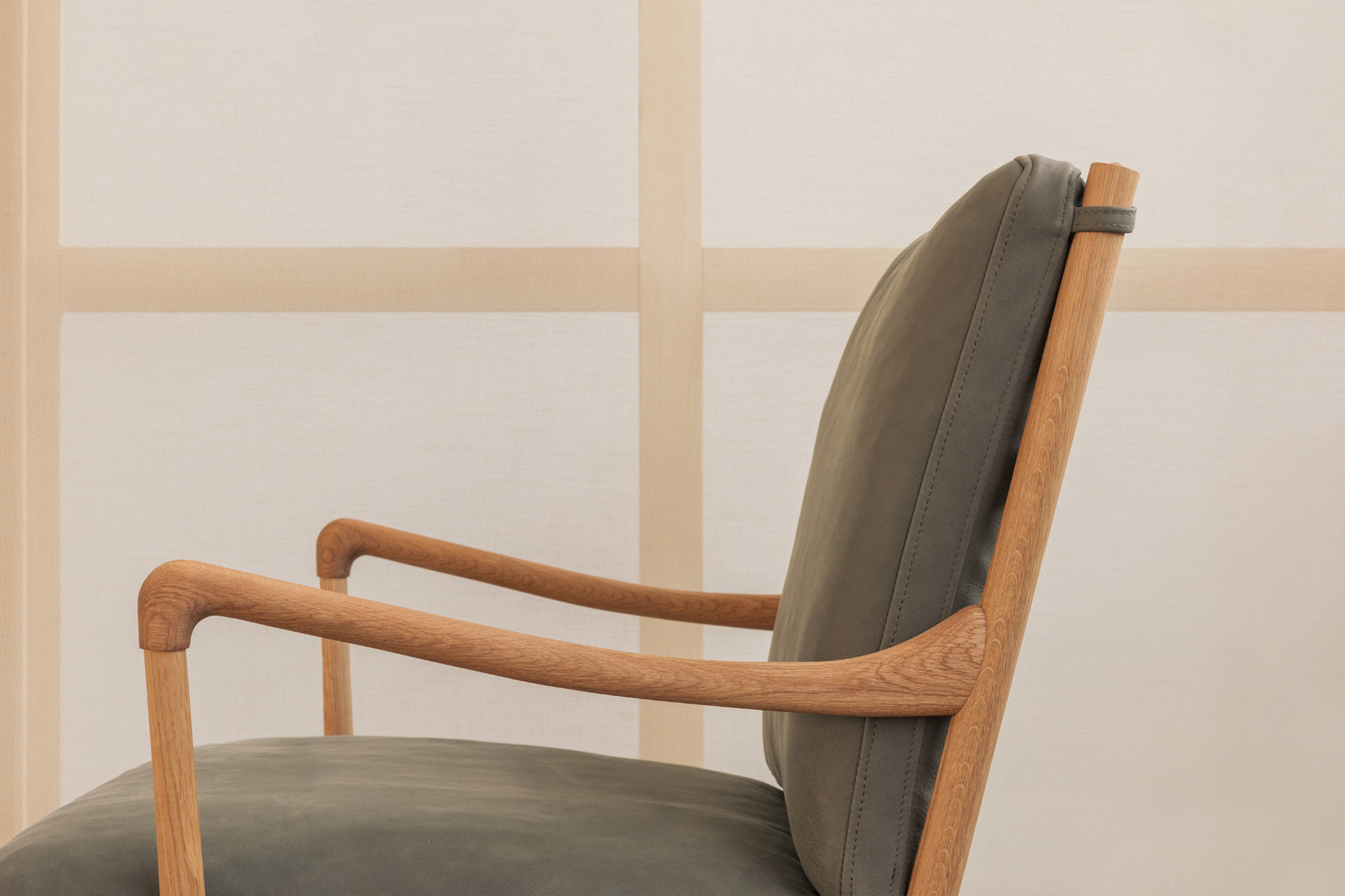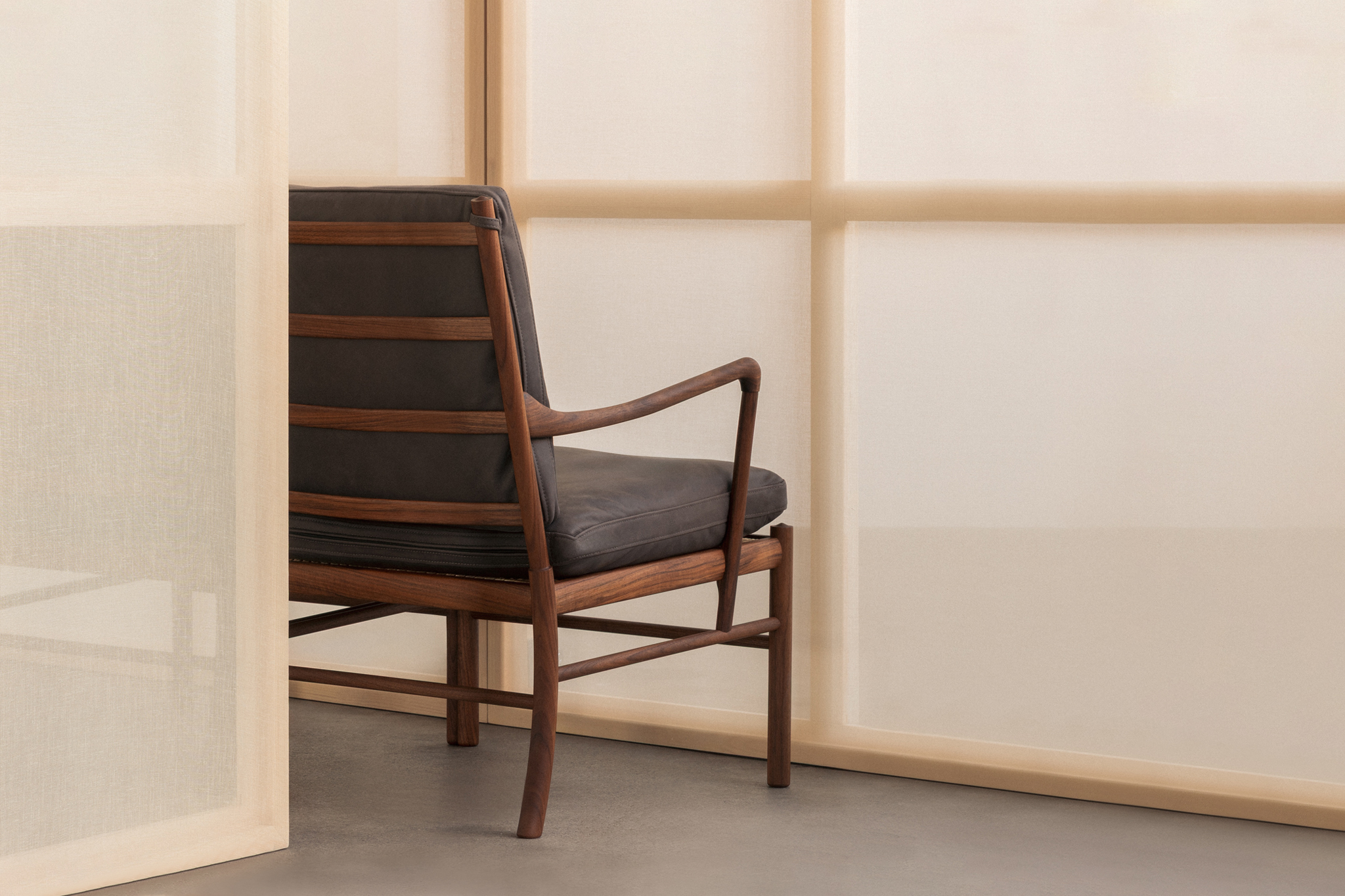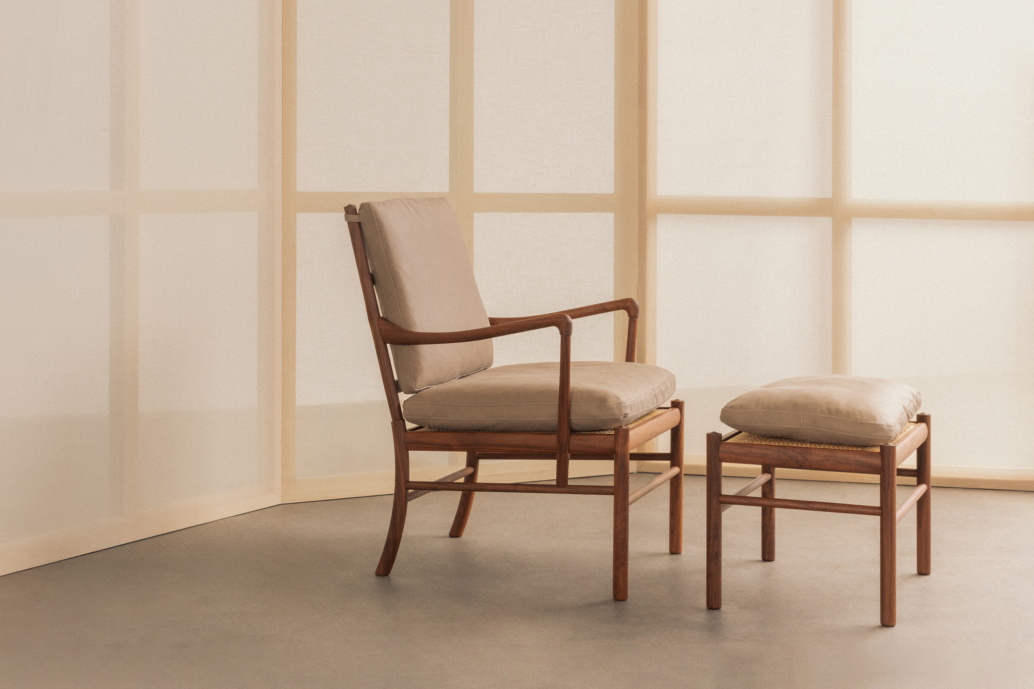 丹麥家具設計先驅 Ole Wanscher,自小隨著藝術家父母遊歷埃及與歐洲,汲取異國文化為靈感,運用至家具創作中,轉化成獨有的設計美學。在丹麥皇家美術學院就讀期間,Wanscher 師從丹麥家具設計之父 Kaare Klint,深受功能主義與結構美學影響,並成為日後丹麥家具設計發展的重要推手。Wanscher 的作品,以精準的結構比例與優雅線條為核心,結合卓越工藝技術及對材質的深刻理解,打造出許多具代表性的家具設計。OW 系列誕生於 1950 年代末期,使用橡木與胡桃木的纖細實木框架為基礎,搭配手工藤編椅座與皮革羽毛坐墊,完美展現 Wanscher 內斂、簡約而富涵詩意的設計美學。