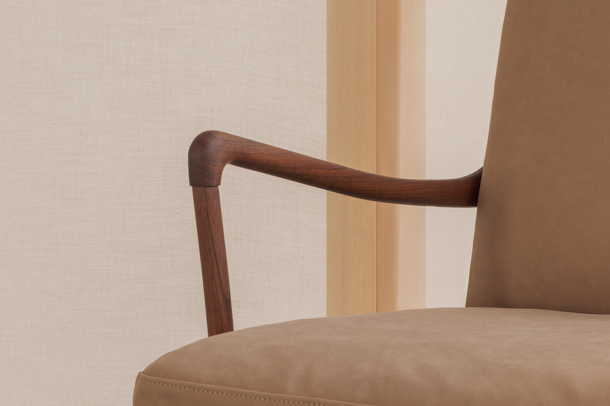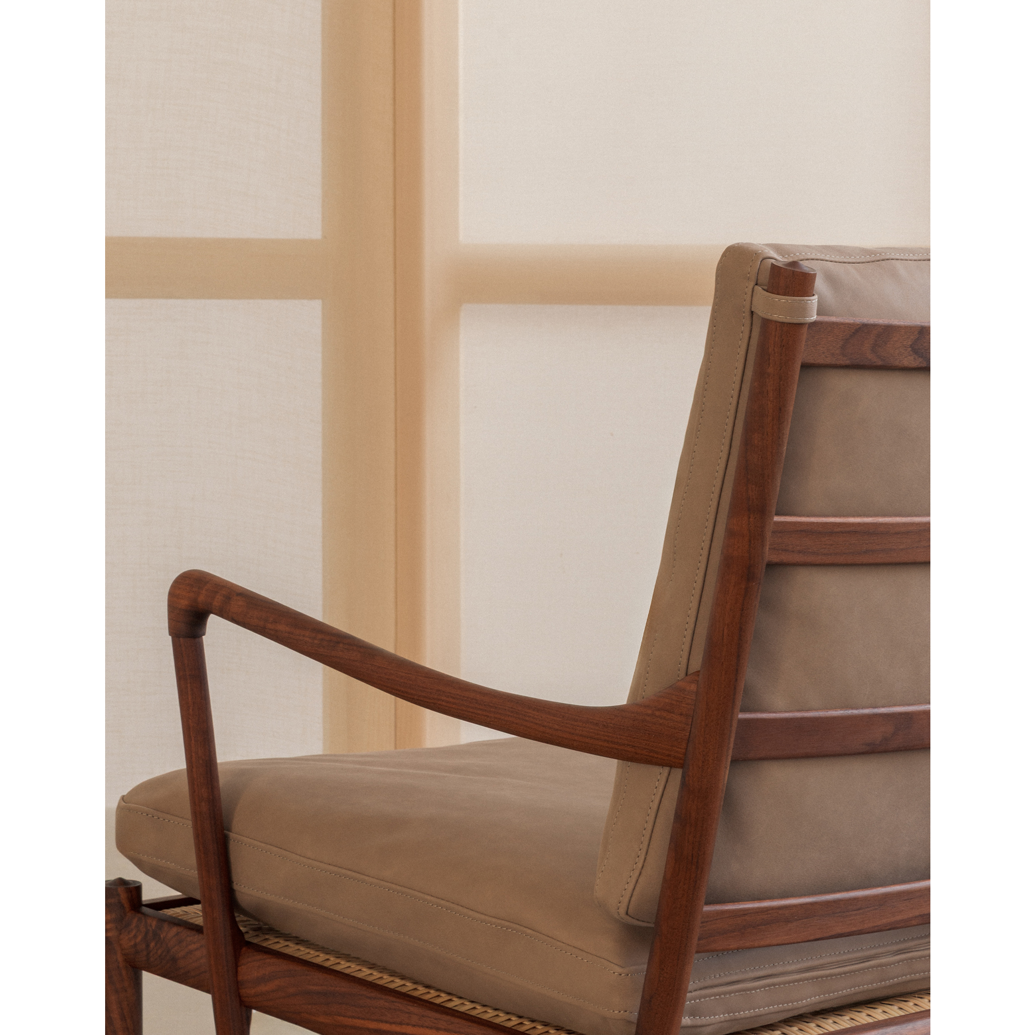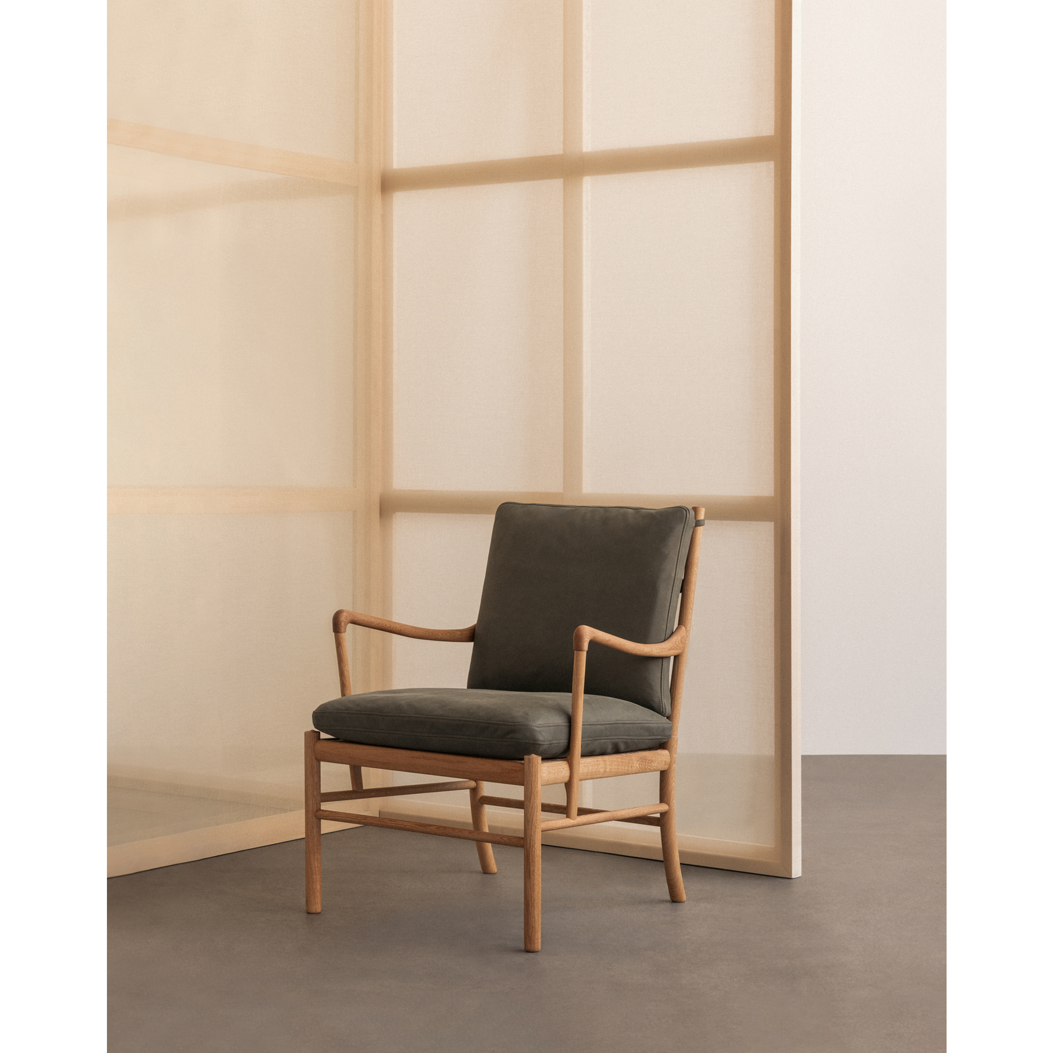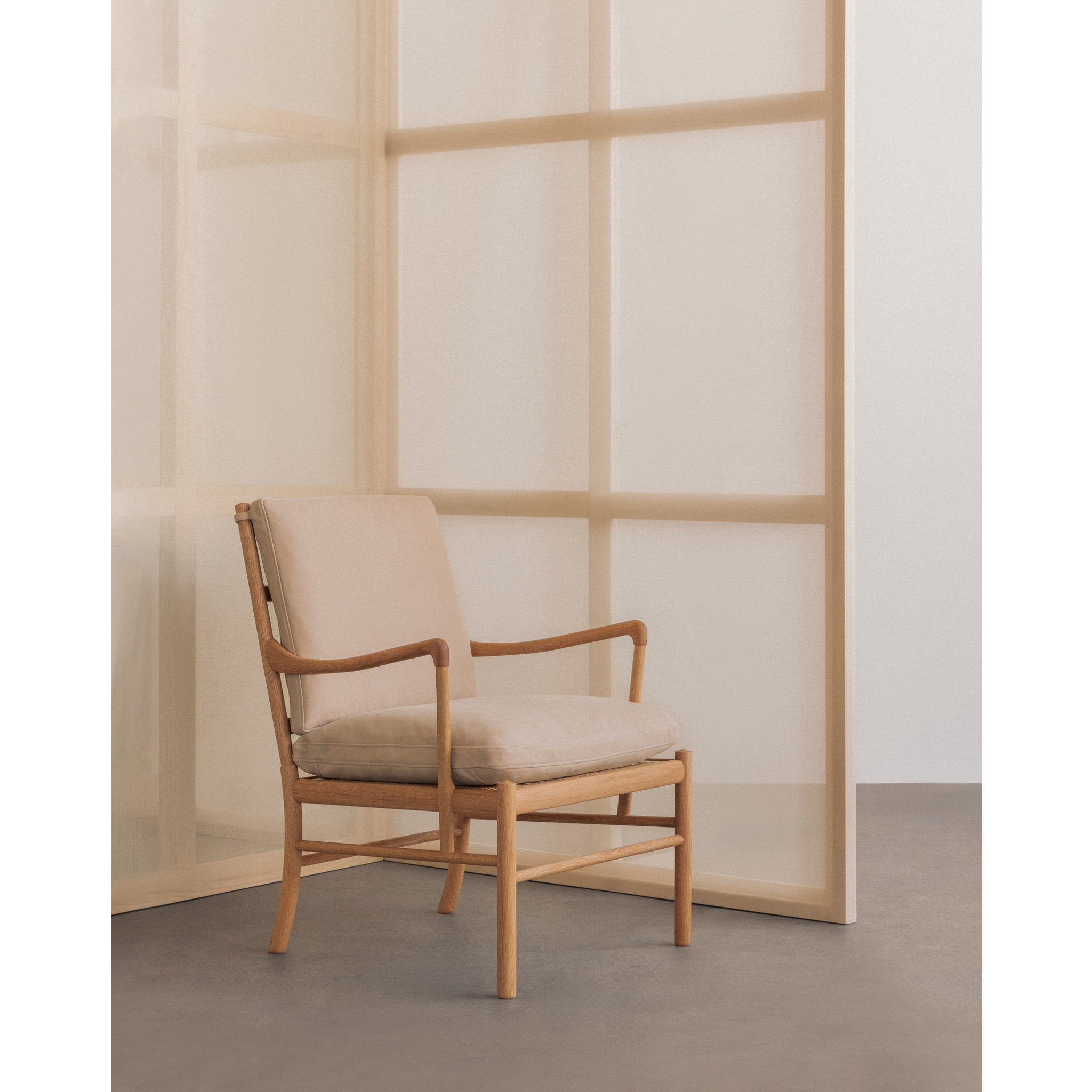 丹麥家具設計先驅 Ole Wanscher,自小隨著藝術家父母遊歷埃及與歐洲,汲取異國文化為靈感,運用至家具創作中,轉化成獨有的設計美學。在丹麥皇家美術學院就讀期間,Wanscher 師從丹麥家具設計之父 Kaare Klint,深受功能主義與結構美學影響,並成為日後丹麥家具設計發展的重要推手。Wanscher 的作品,以精準的結構比例與優雅線條為核心,結合卓越工藝技術及對材質的深刻理解,打造出許多具代表性的家具設計。OW 系列誕生於 1950 年代末期,使用橡木與胡桃木的纖細實木框架為基礎,搭配手工藤編椅座與皮革羽毛坐墊,完美展現 Wanscher 內斂、簡約而富涵詩意的設計美學。