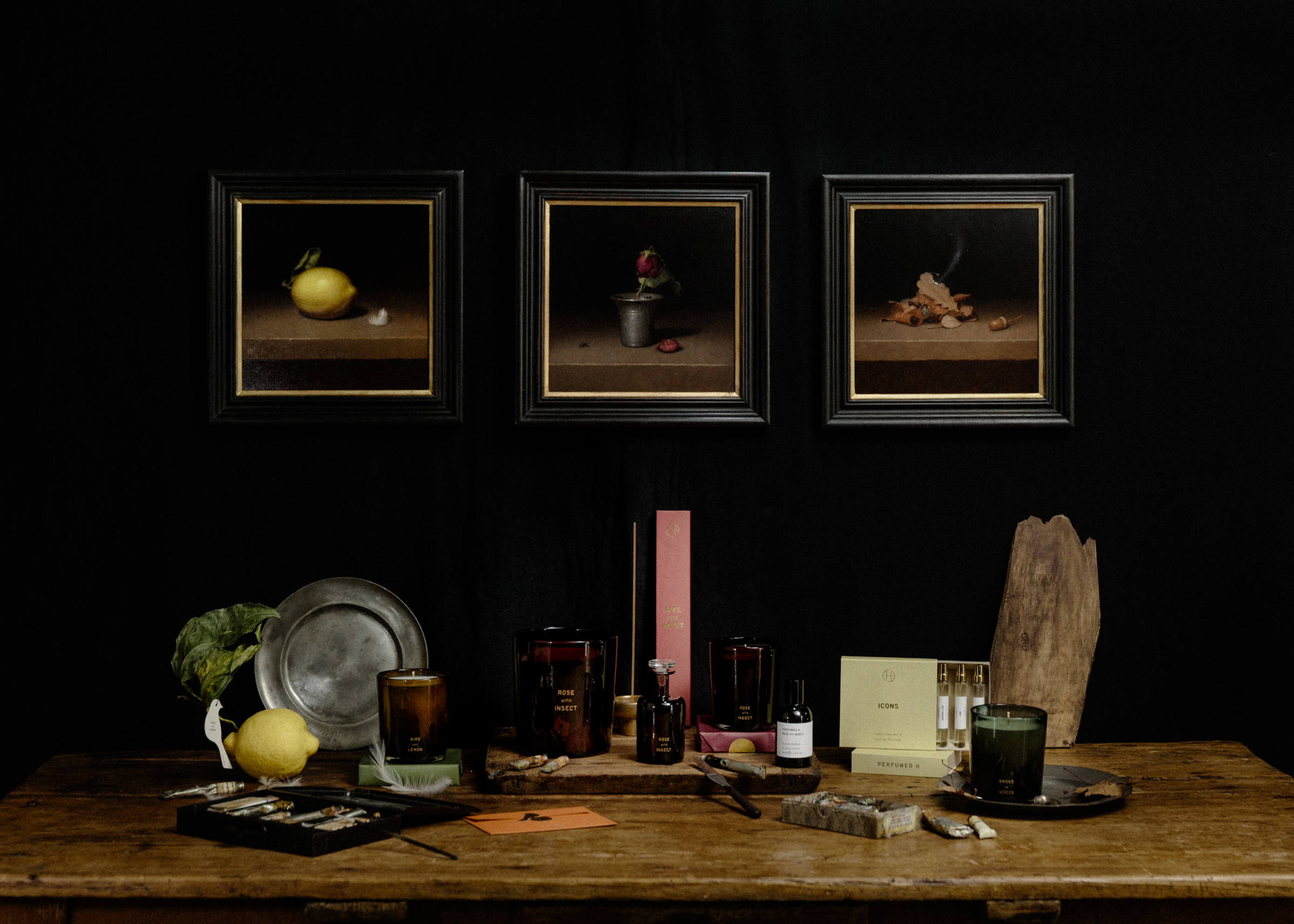 以三聯幅的靜物畫延伸靈感,推出「𝑨 𝑷𝒂𝒊𝒏𝒕𝒆𝒅 𝒍𝒊𝒇𝒆 彩繪人生.節日限量系列」,對映畫作的三款香氣 𝑹𝒐𝒔𝒆 𝒘𝒊𝒕𝒉 𝒊𝒏𝒔𝒆𝒄𝒕 玫瑰與昆蟲、𝑩𝒊𝒓𝒅 𝒂𝒏𝒅 𝒍𝒆𝒎𝒐𝒏 黃雀與檸檬、 𝑺𝒎𝒐𝒌𝒆 𝒊𝒏 𝒘𝒐𝒐𝒅𝒔 樹林與沉煙,讓心靈循著感官自在漫遊。